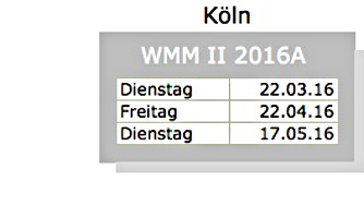 findet an den folgenden Terminen statt: